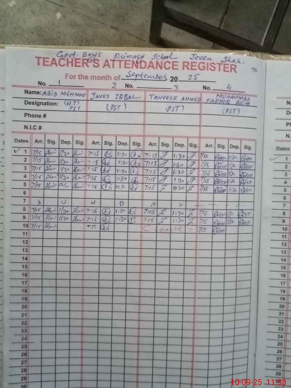| Name: AB**** MA**** Designation: (School Headmaster's/Headmistress's) PST Phone/Cell Number: 03**** |
