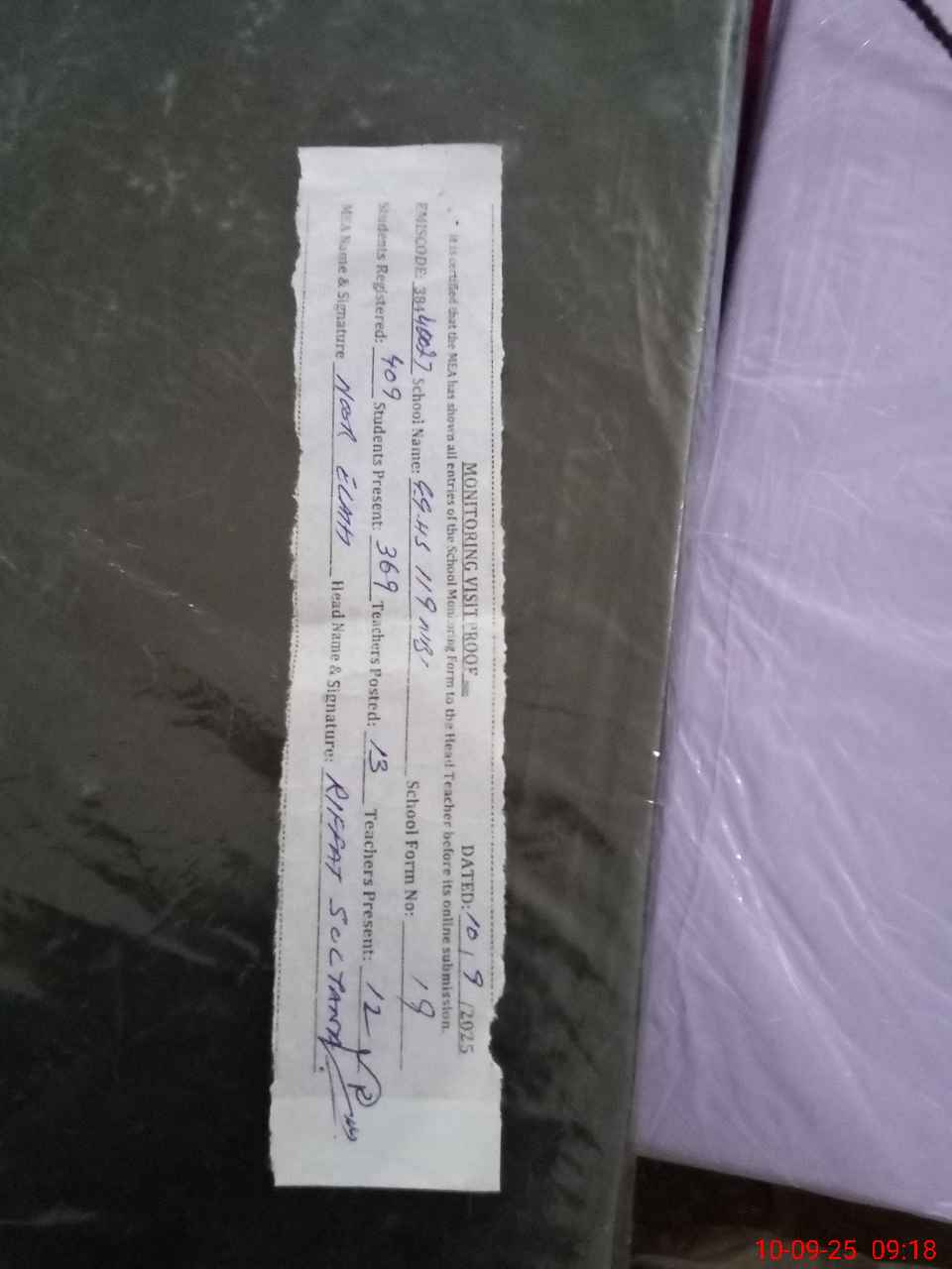 | Attendance Register | Head Teacher | MEA with School | Visit Proof |