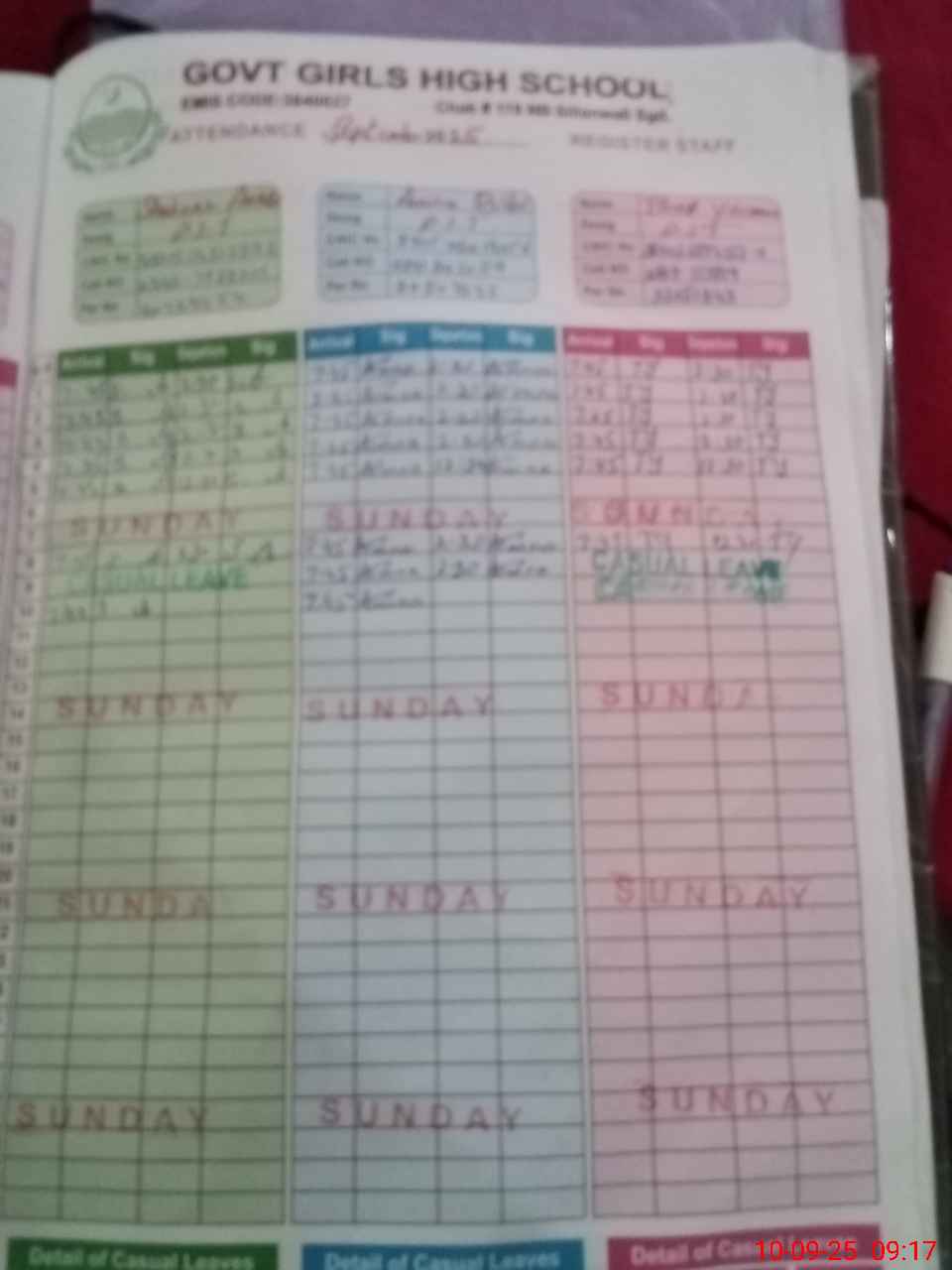 | CNIC | Full Name | Designation | R/C | Absence During Last Calender Month |