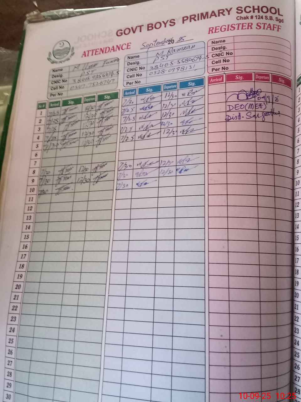 | CNIC | Full Name | Designation | R/C | Absence during last cal. month |