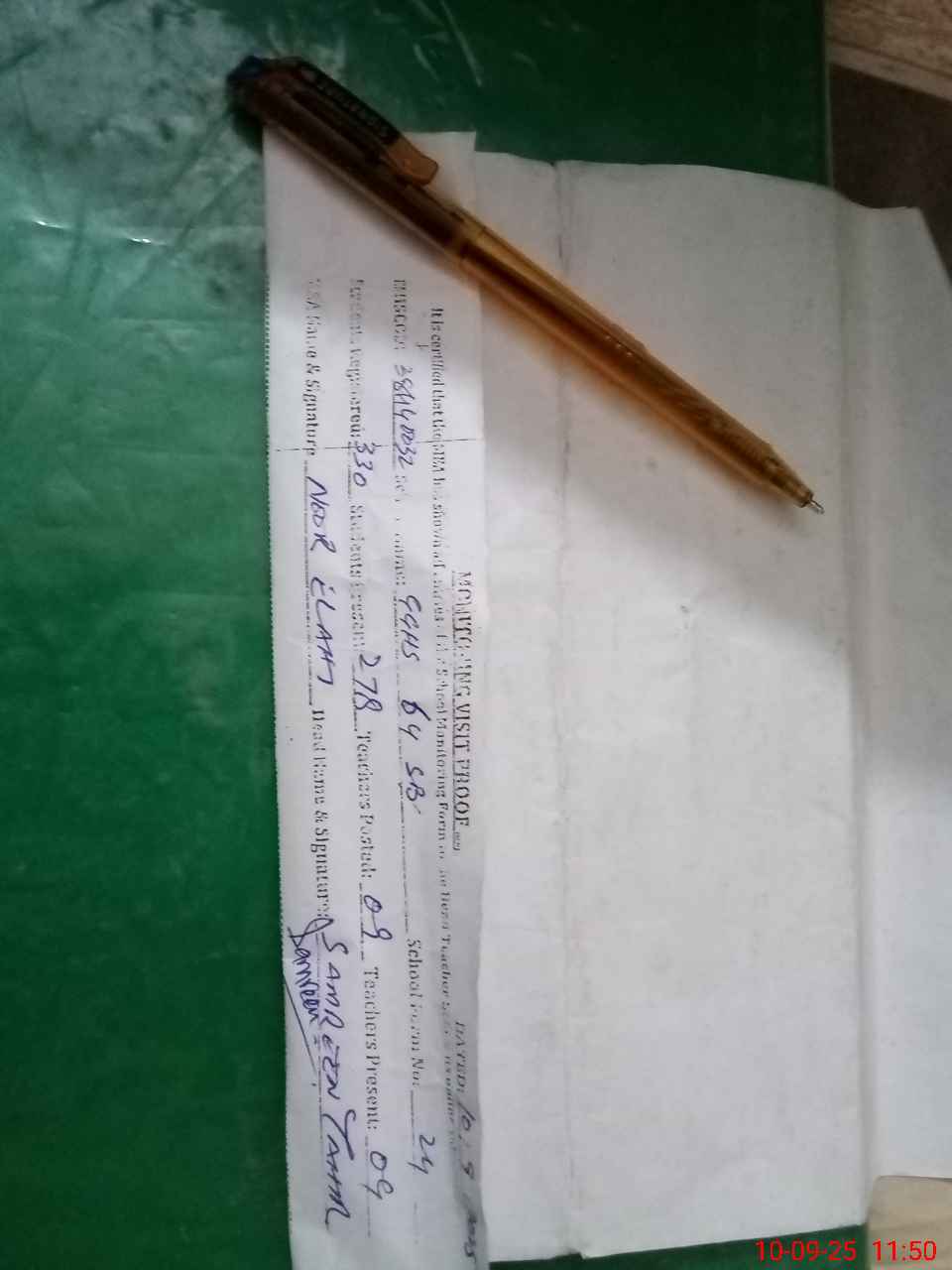 | Attendance Register | Head Teacher | MEA with School | Visit Proof |