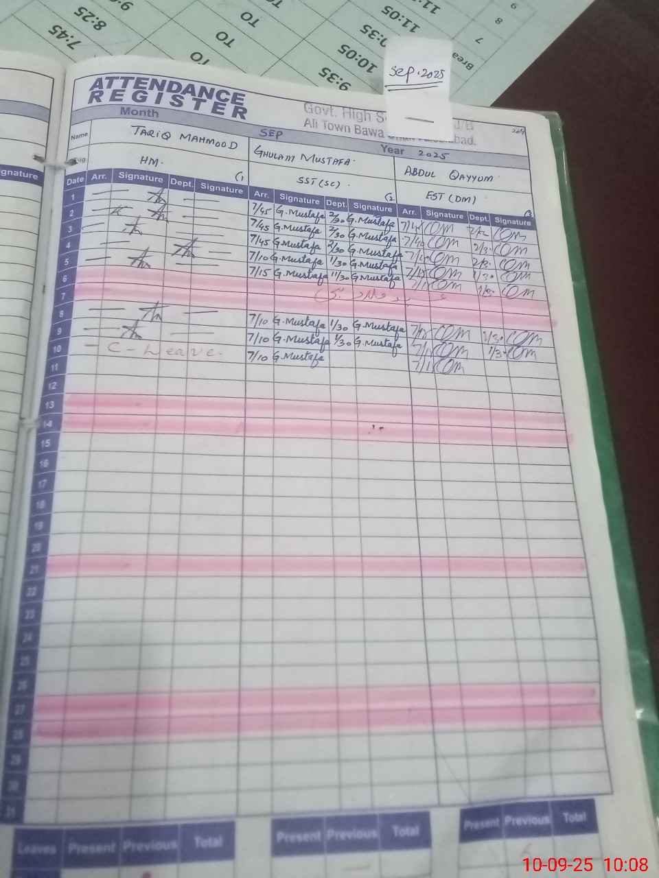 | CNIC | Full Name | Designation | R/C | Absence during last cal. month |