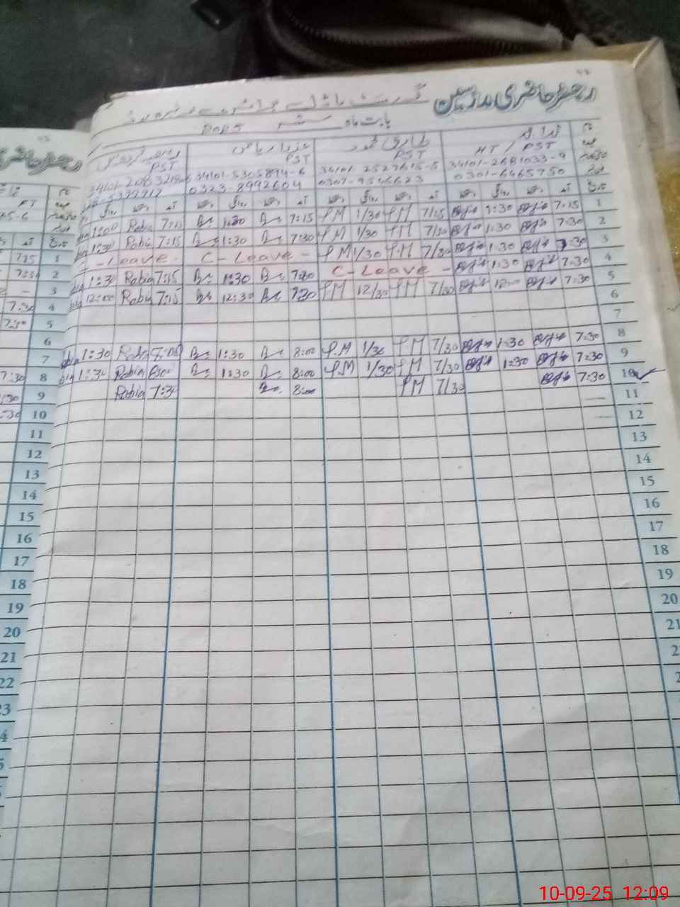 | CNIC | Full Name | Designation | R/C | Absence during last cal. month |