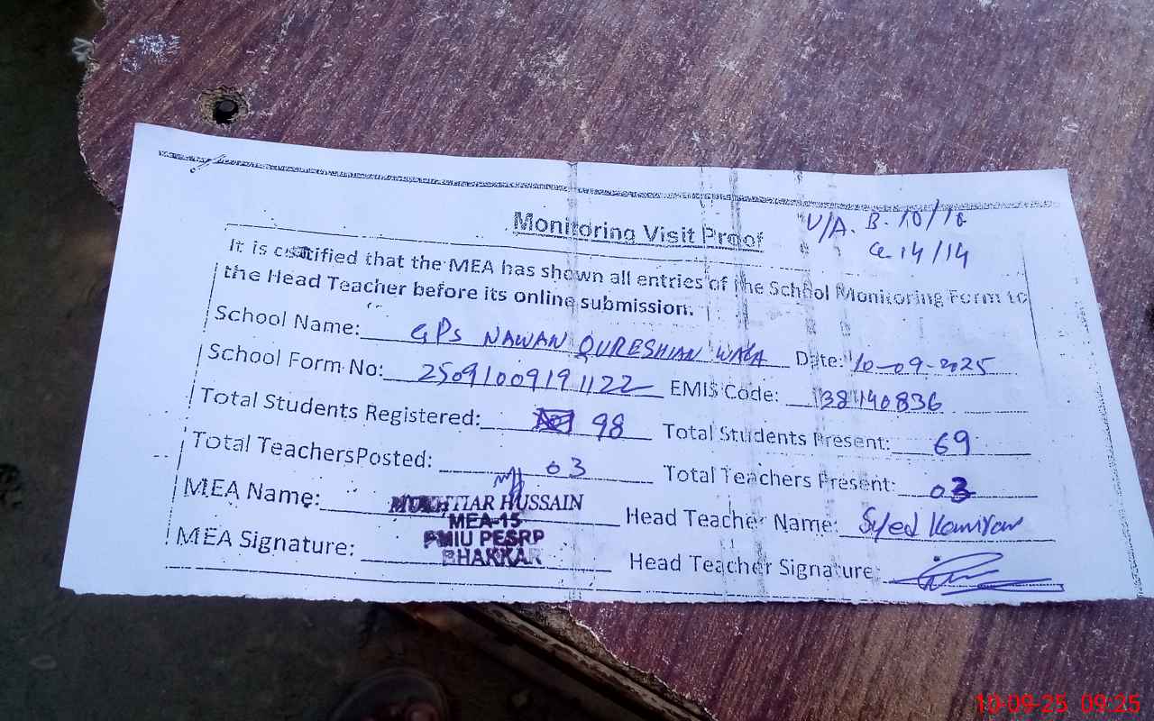 | EMIS Code: 38140836 | Name of School: GPS NAWAN QURESHI WALA | |||