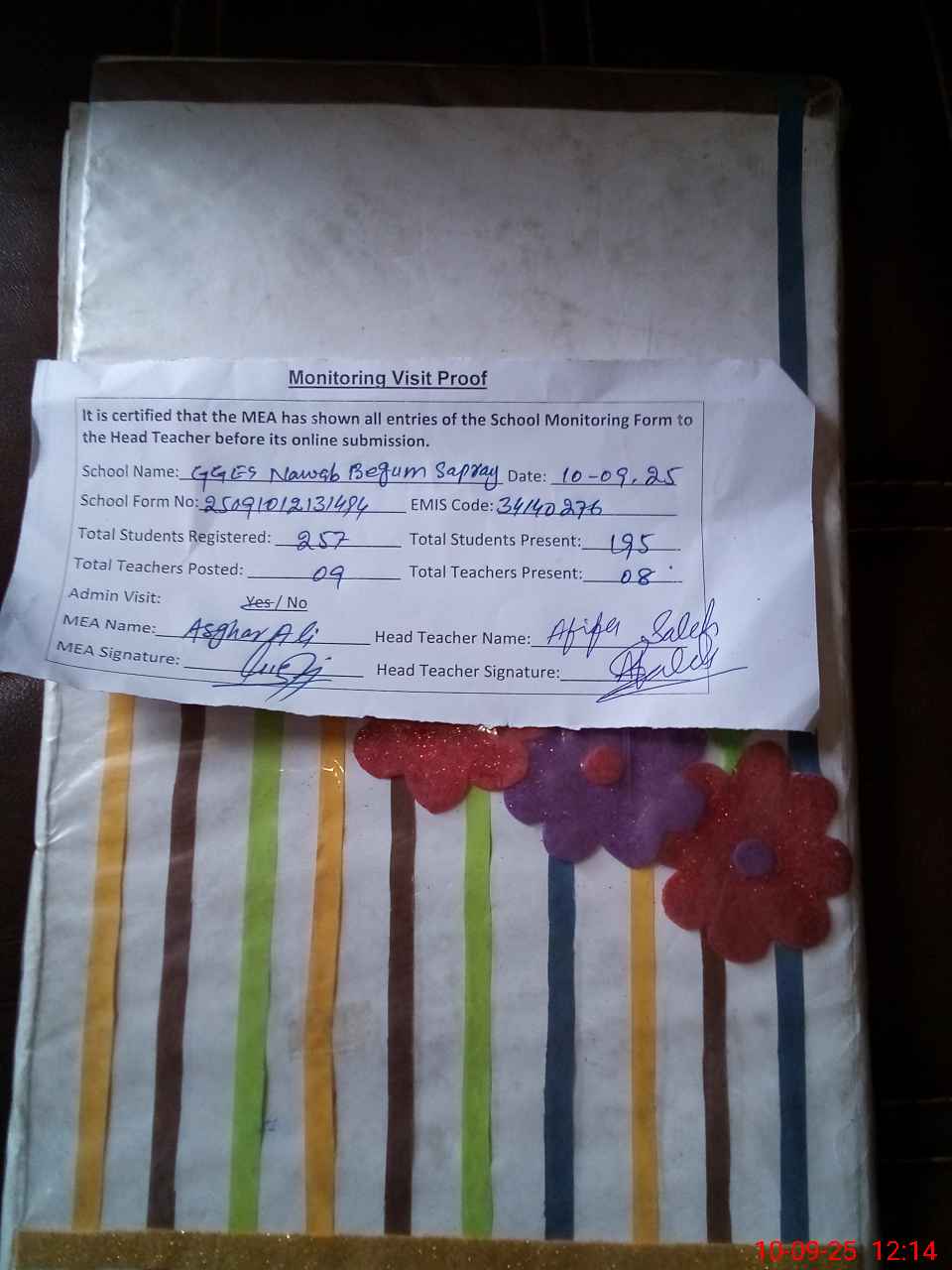 | EMIS Code: 34140276 | Name of School: GGES NAWAB BEGUM (SUPRAY) | |||