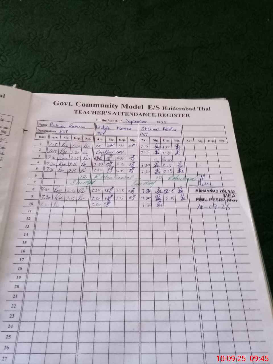 | Name: SU**** NA**** Designation: (School Headmaster's/Headmistress's) Headmaster Phone/Cell Number: 03**** |