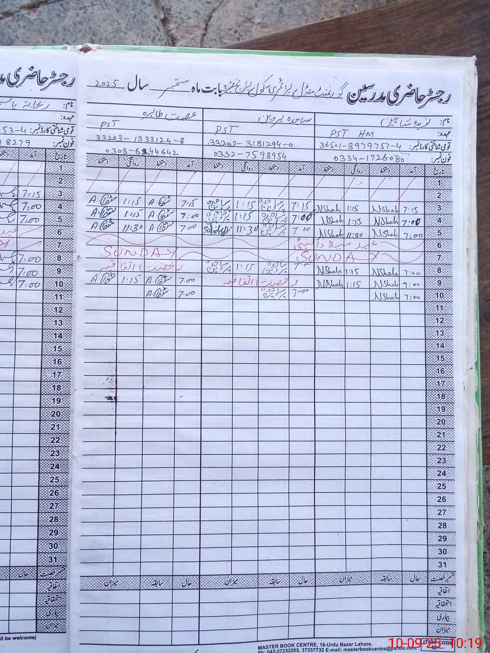 | Name: NA**** SH**** Designation: (School Headmaster's/Headmistress's) PST Phone/Cell Number: 03**** |