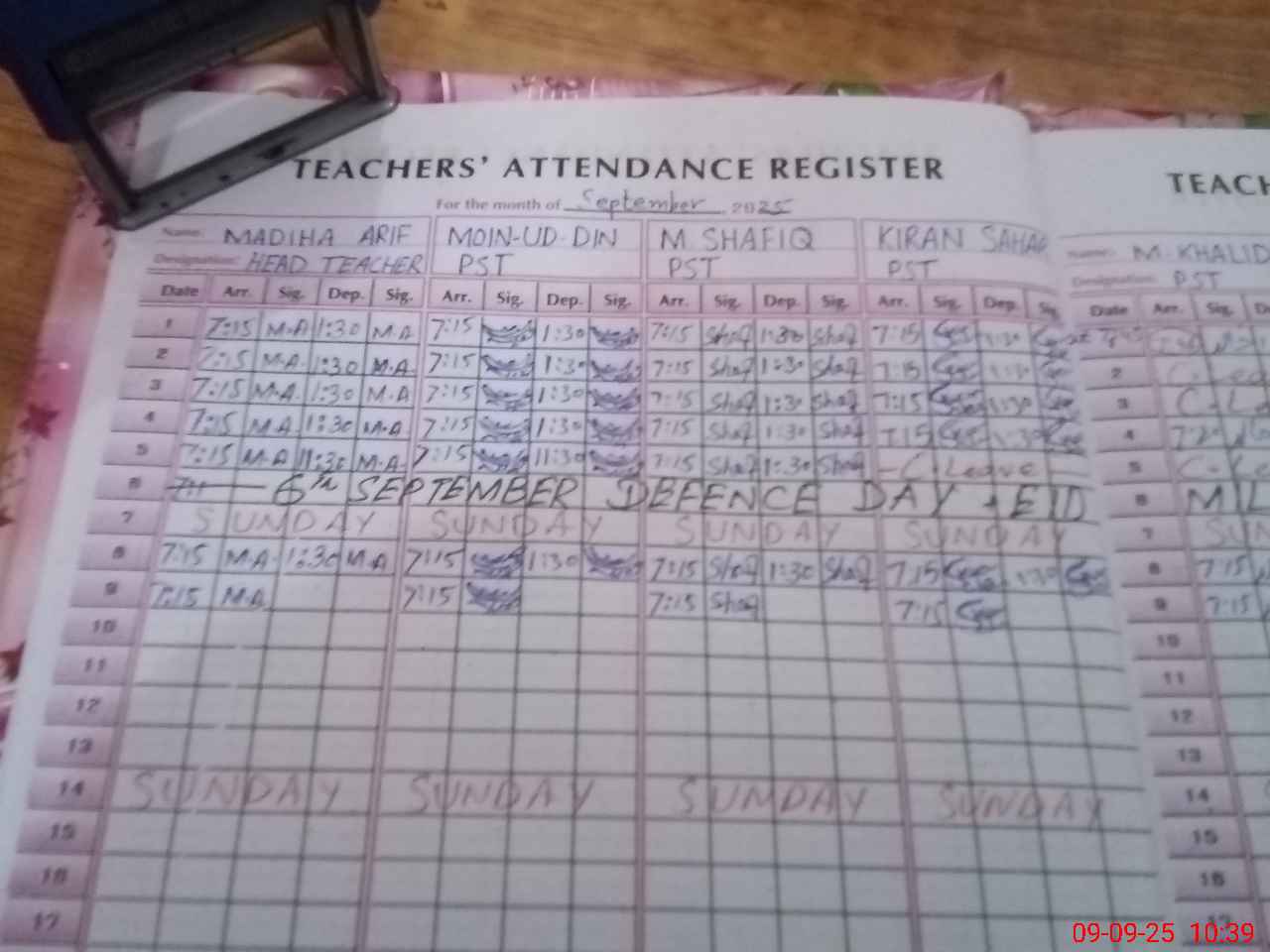 | CNIC | Full Name | Designation | R/C | Absence During Last Calender Month |