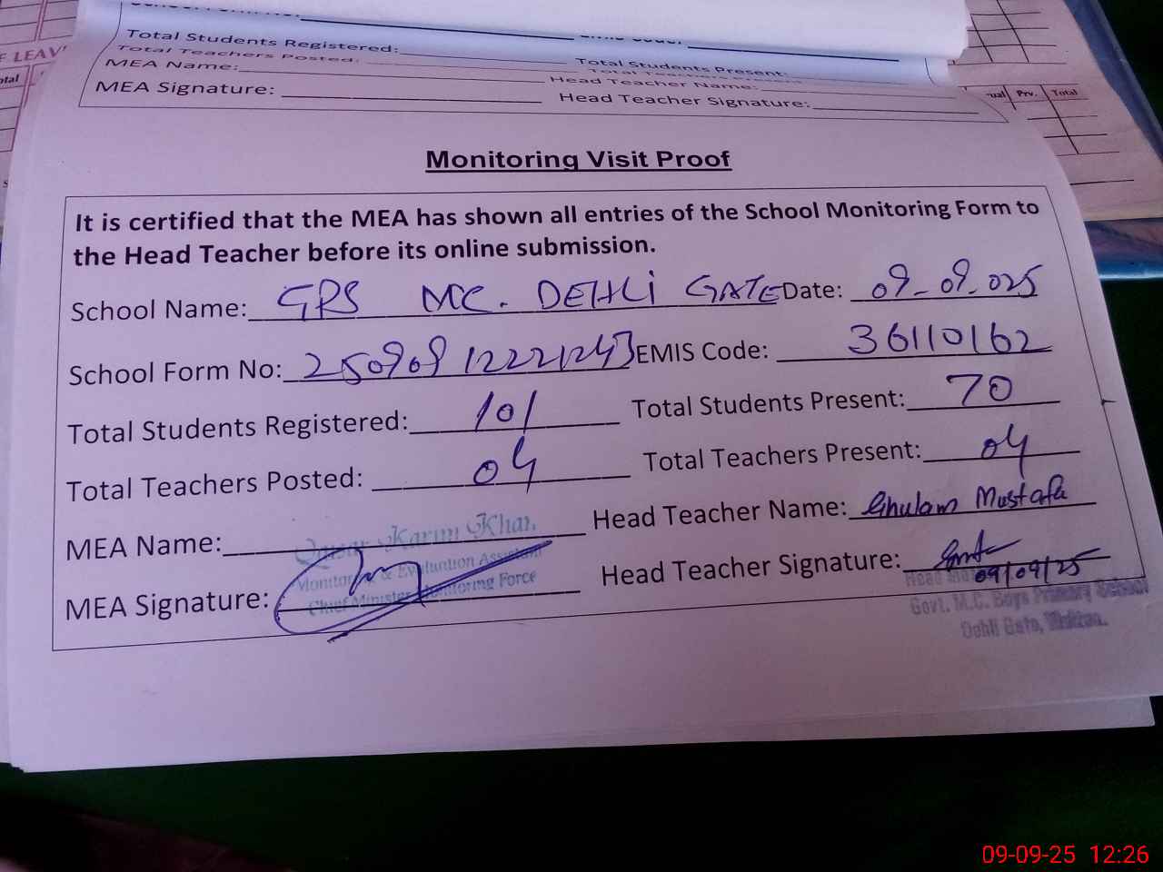 | EMIS Code: 36110162 | Name of School: GPS MC DEHLI GATE MULTAN | |||