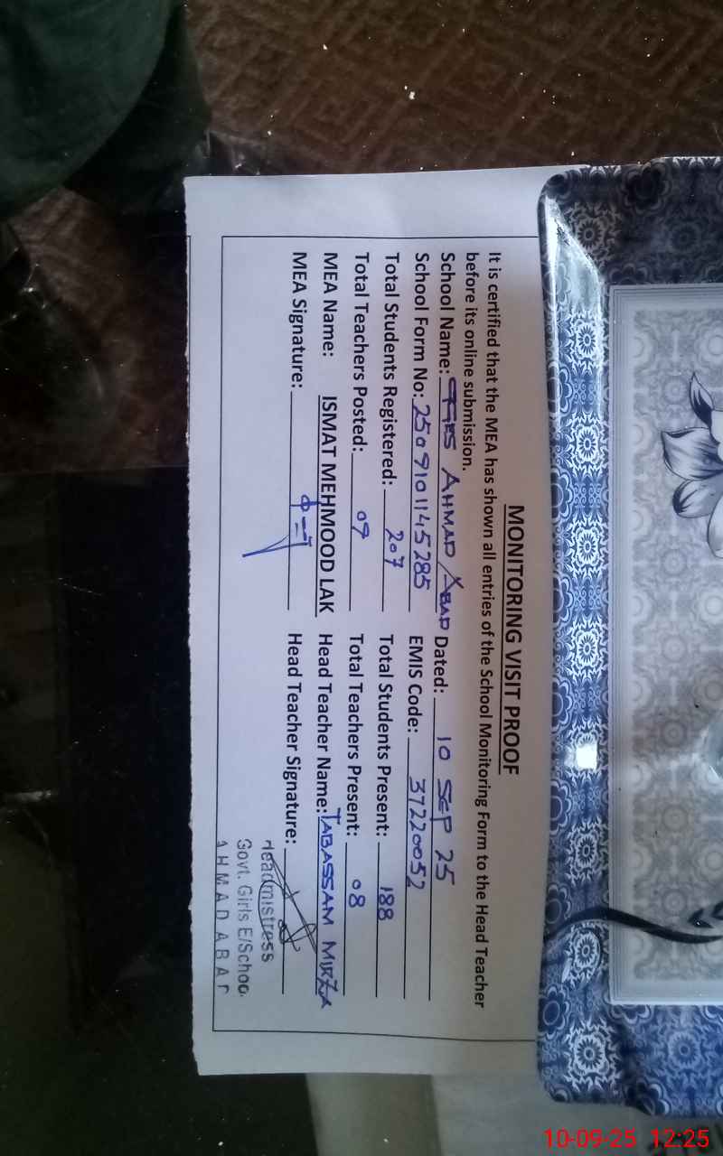 | EMIS Code: 37220052 | Name of School: GGES AHMED ABAD | |||