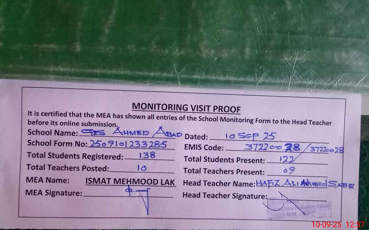 | EMIS Code: 37220028 | Name of School: GES AHMED ABAD | |||