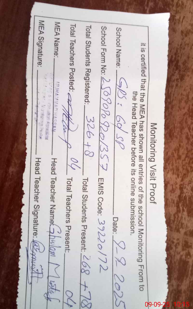 | EMIS Code: 39220172 | Name of School: GPS 60 SP POST OFFICE MALKA HANS | |||