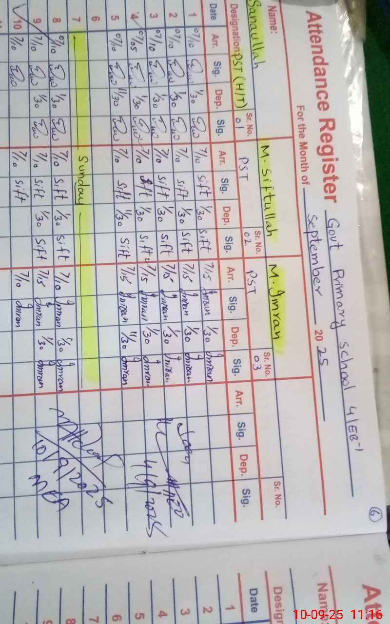 | Name: SA**** UL**** Designation: (School Headmaster's/Headmistress's) PST Phone/Cell Number: 03**** |