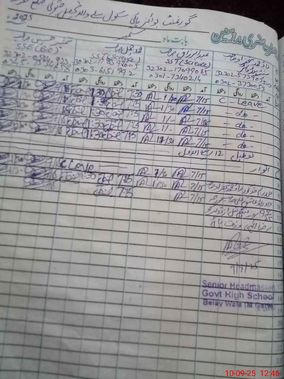 | Name: Ra**** Mu**** sh**** Designation: (School Headmaster's/Headmistress's) Sr Headmaster Phone/Cell Number: 03**** |