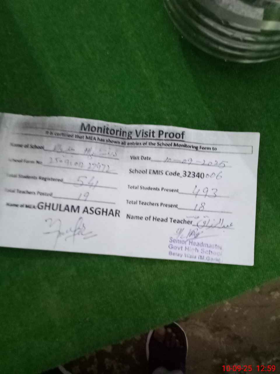 | EMIS Code: 32340006 | Name of School: GHS BELAY WALA | |||