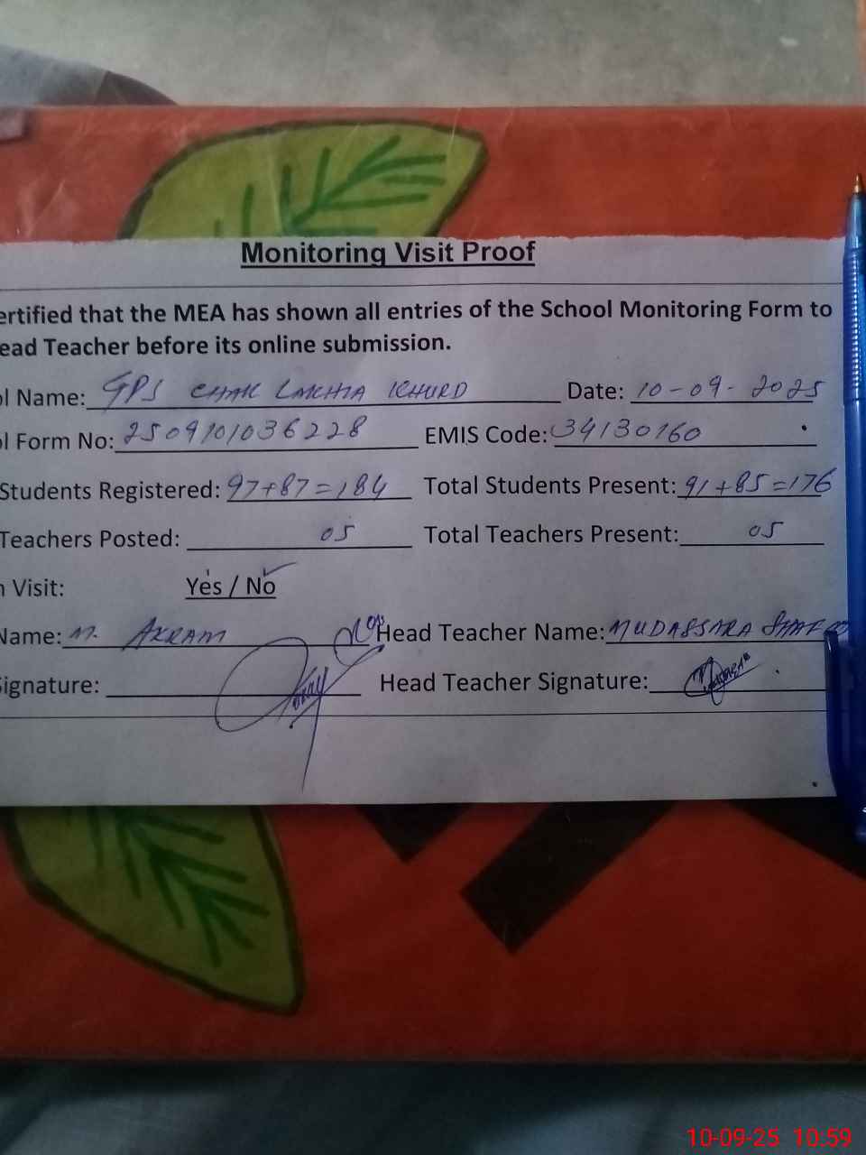 | EMIS Code: 34130160 | Name of School: GPS CHAK LAKHIA KHURD | |||