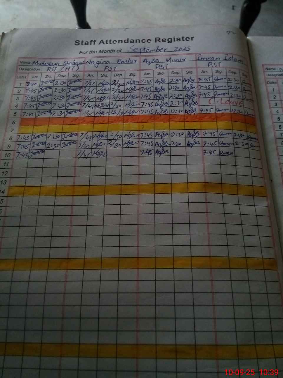 | Name: MU**** SH**** Designation: (School Headmaster's/Headmistress's) PST Phone/Cell Number: 03**** |