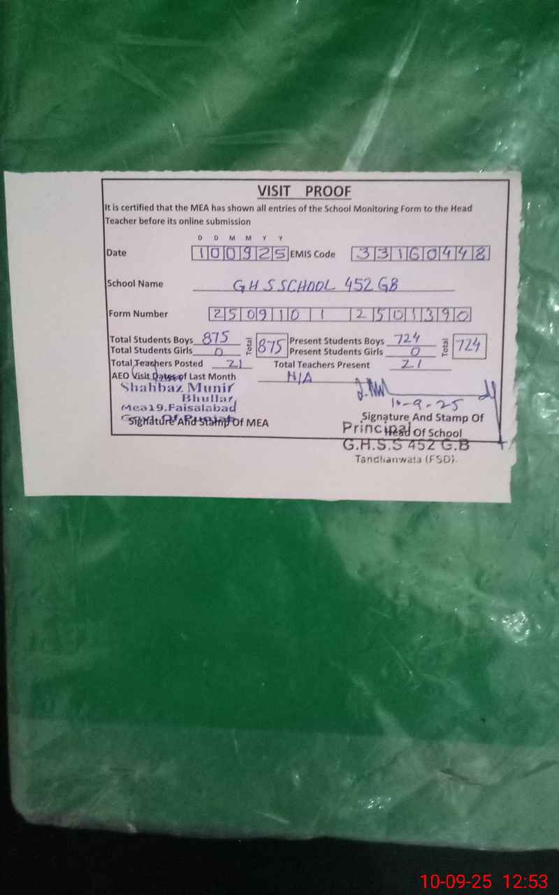 | EMIS Code: 33160448 | Name of School: GHSS CHAK NO.452 GB FSD | |||