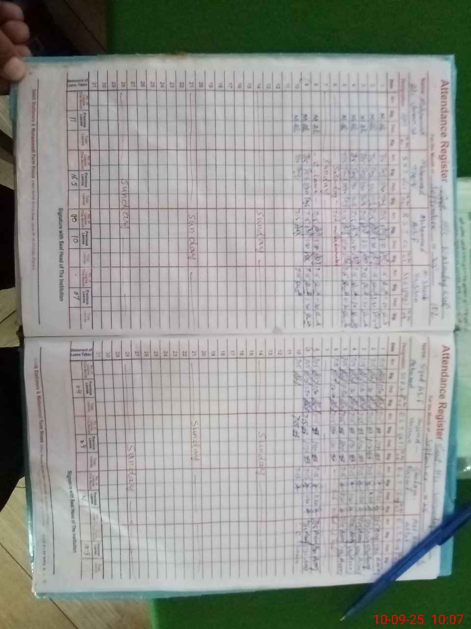 | CNIC | Full Name | Designation | R/C | Absence During Last Calender Month |
