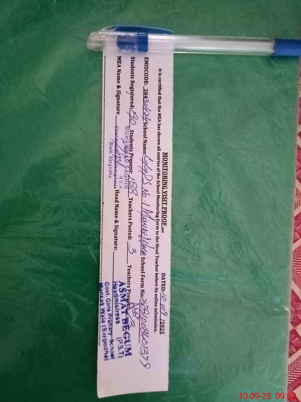 | Monitoring Date: 10-09-2025 | Start Time: 10-09-2025 08:40 AM | End Time: 10-09-2025 09:35 AM | Name of MEA: MU**** SA**** | |