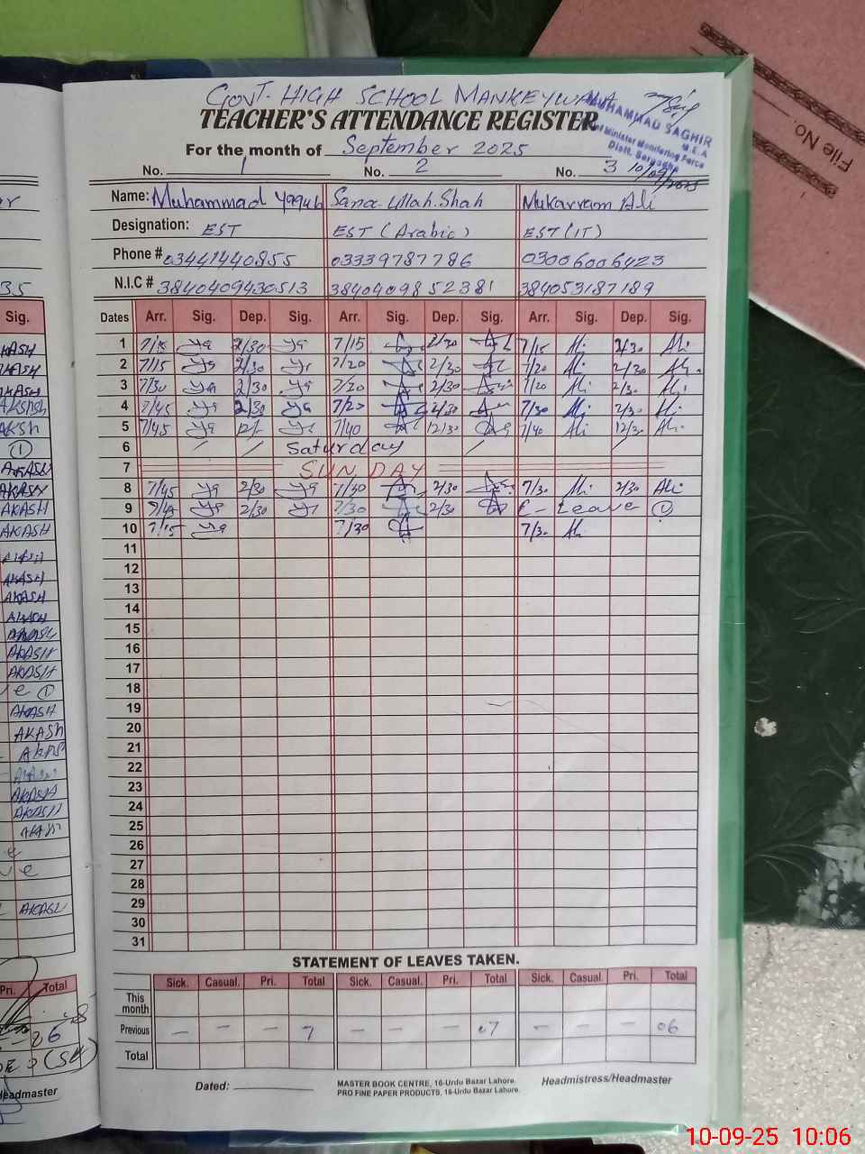 | Name: MU**** YA**** Designation: (School Headmaster's/Headmistress's) EST Phone/Cell Number: 03**** |