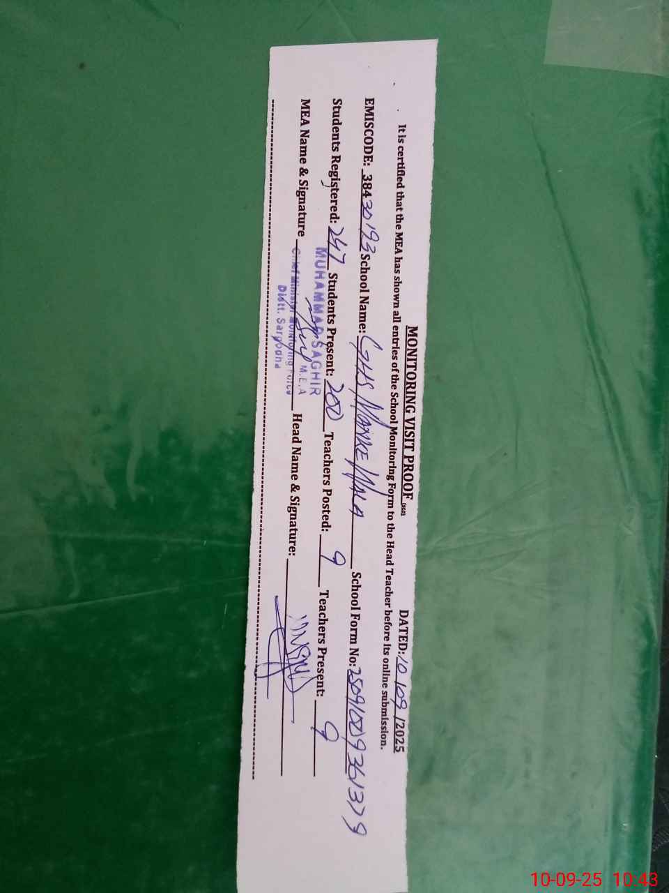 | EMIS Code: 38430193 | Name of School: GHS MANKEY WALA | |||