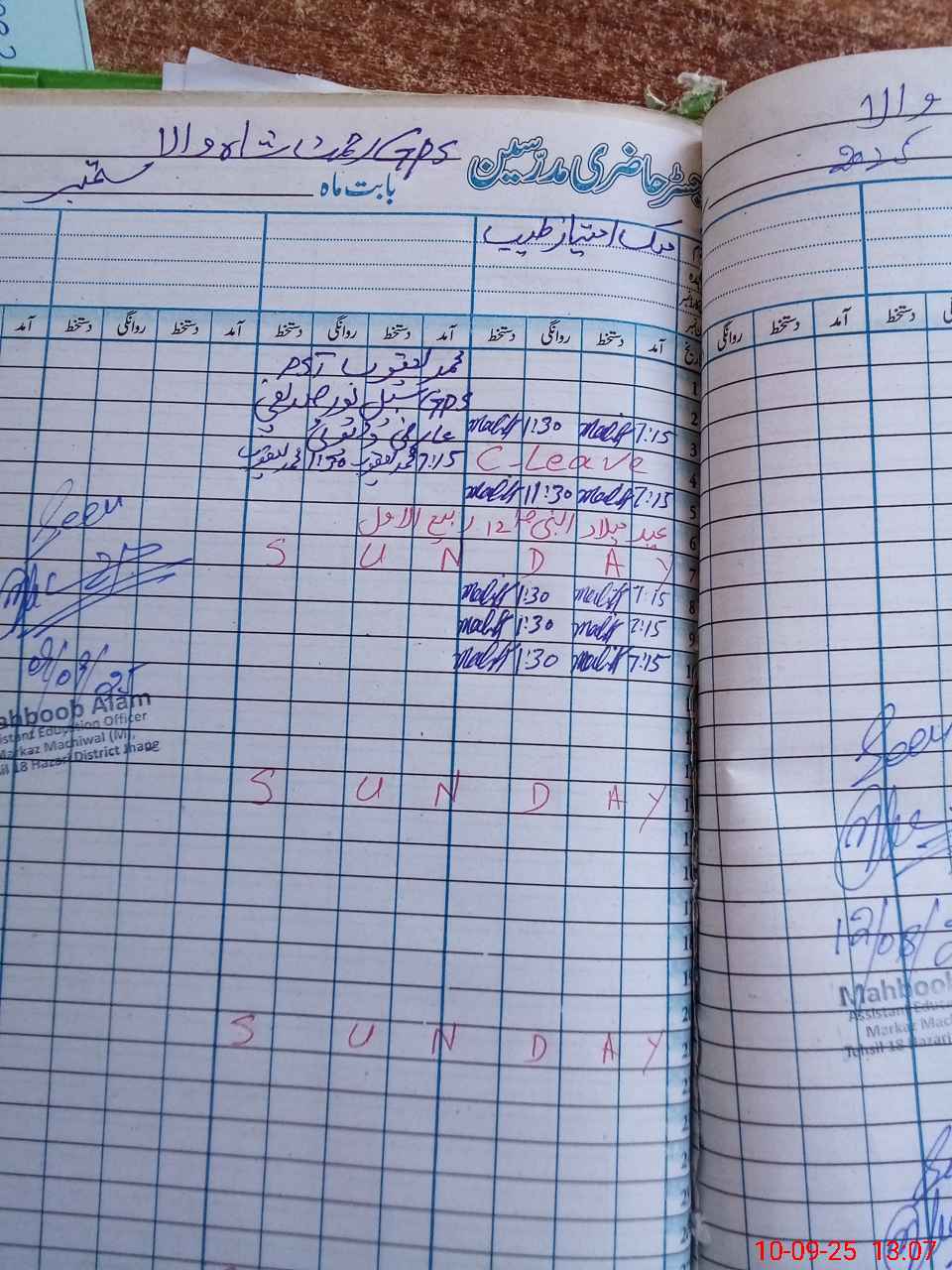 | CNIC | Full Name | Designation | R/C | Absence During Last Calender Month |