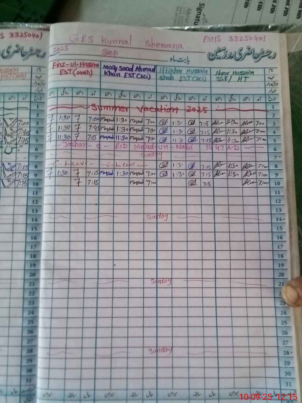 | CNIC | Full Name | Designation | R/C | Absence During Last Calender Month |