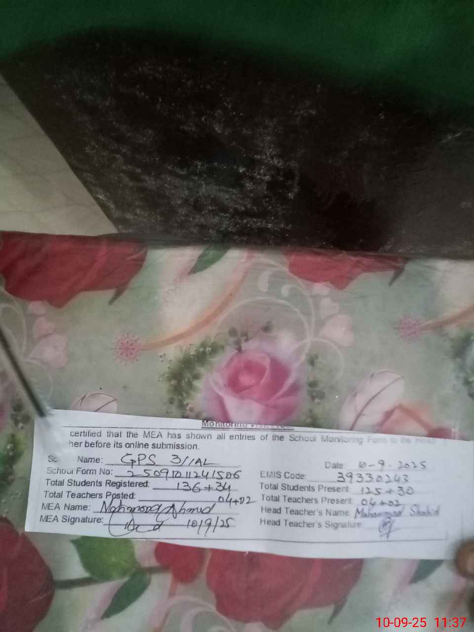 | Certified that this School was Inspected by the Undersigned MEA/DMO Today and the Information Stated Above is as Per Record. | |||||
