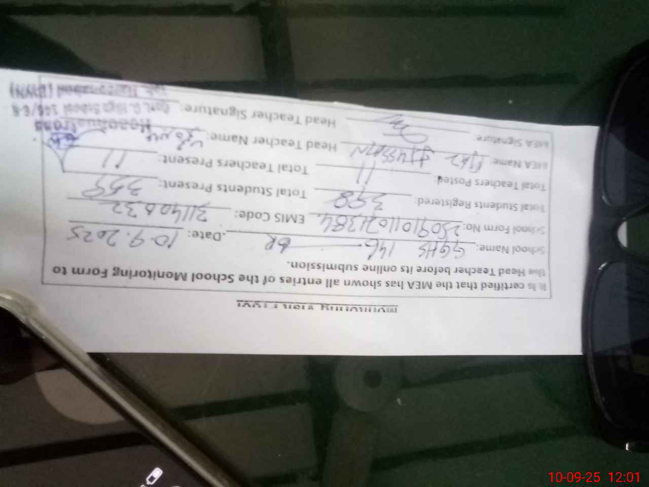 | Name: MI**** MA**** Designation: (School Headmaster's/Headmistress's) SST Sc Phone/Cell Number: 03**** |