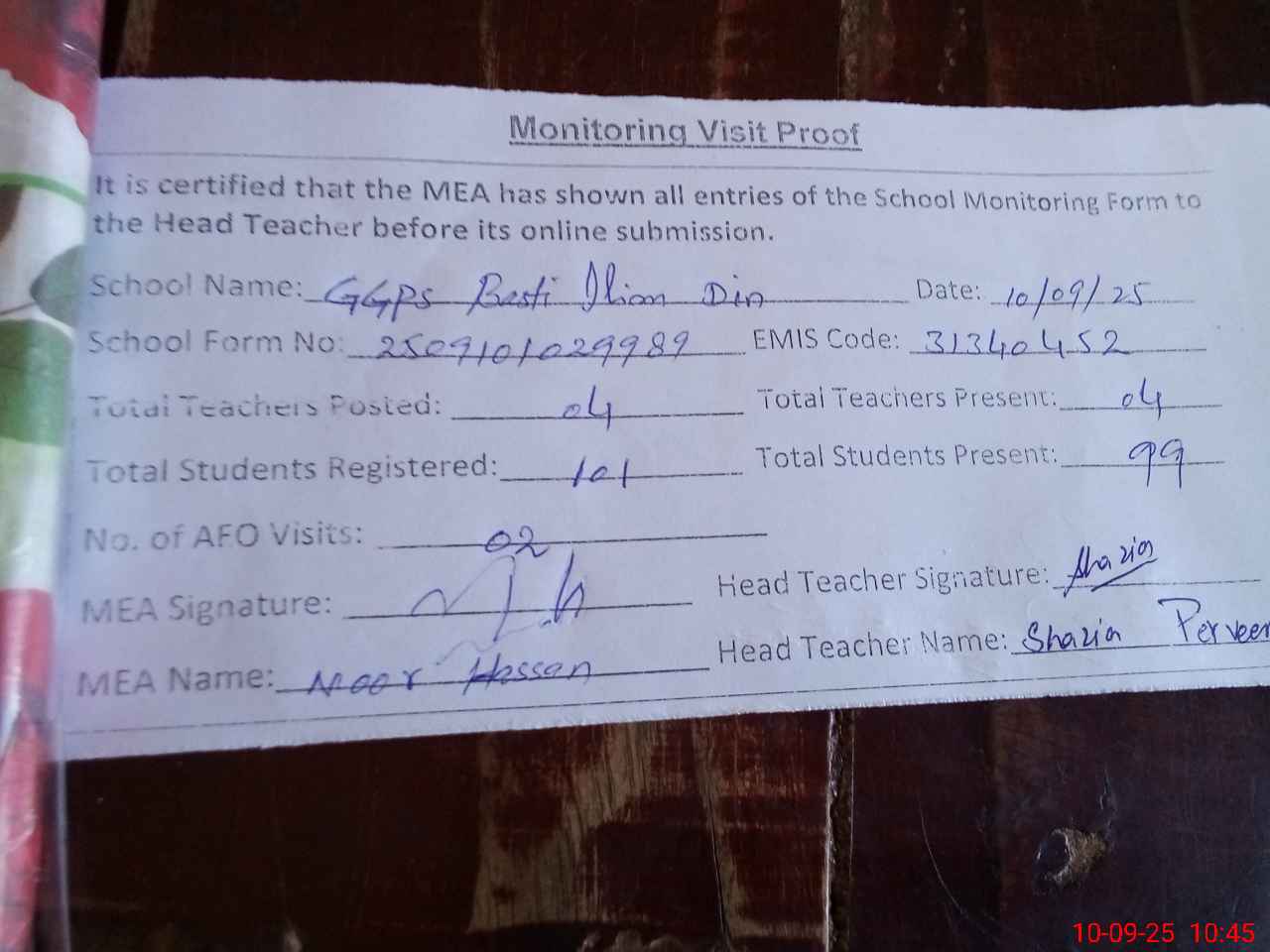 | EMIS Code: 31340452 | Name of School: GGPS BASTI ILAM DIN | |||
