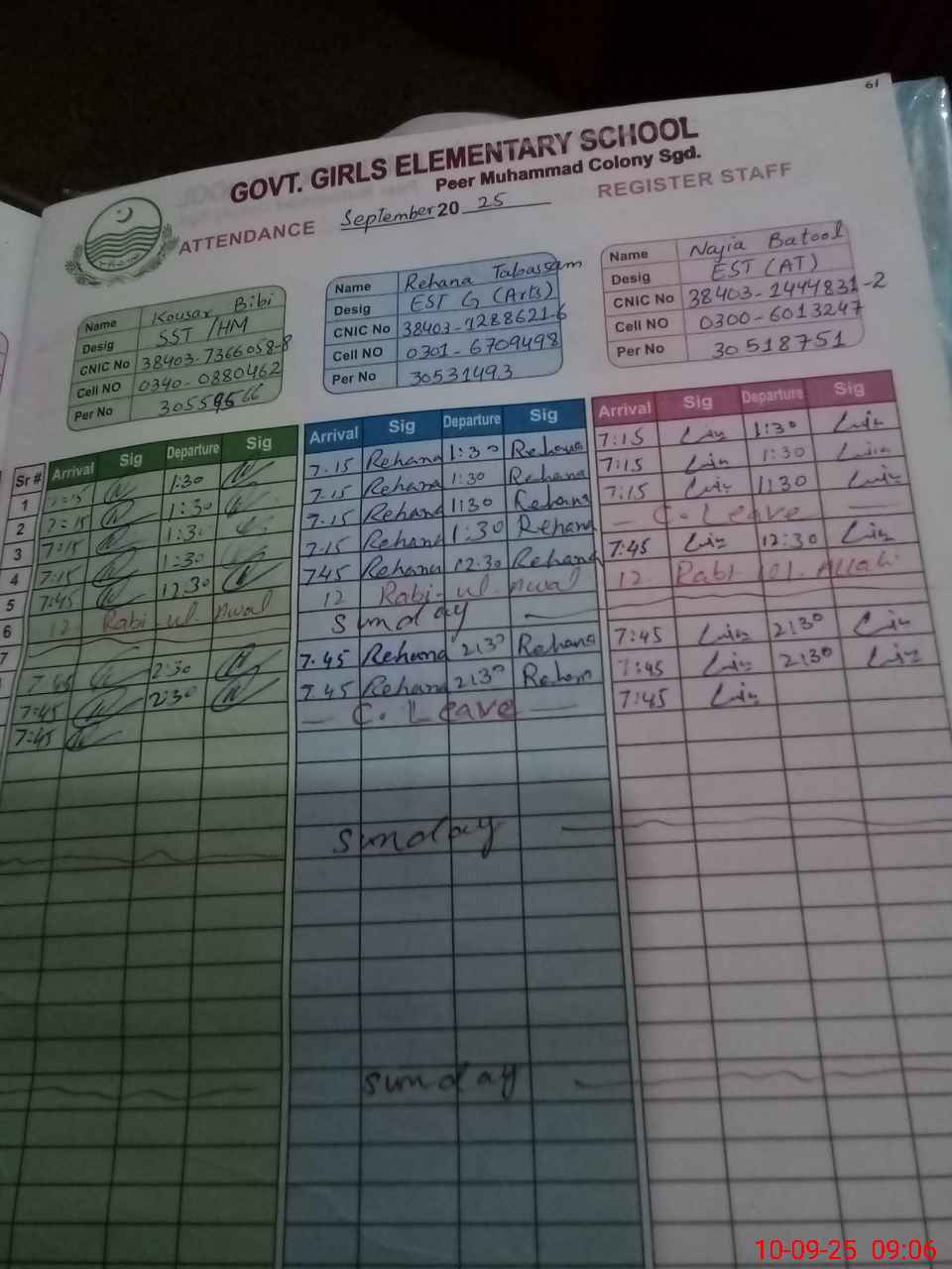 | District: SARGODHA | Tehsil: SARGODHA | Markaz: SARGODHA SADAR - FEMALE | Level: Middle | |