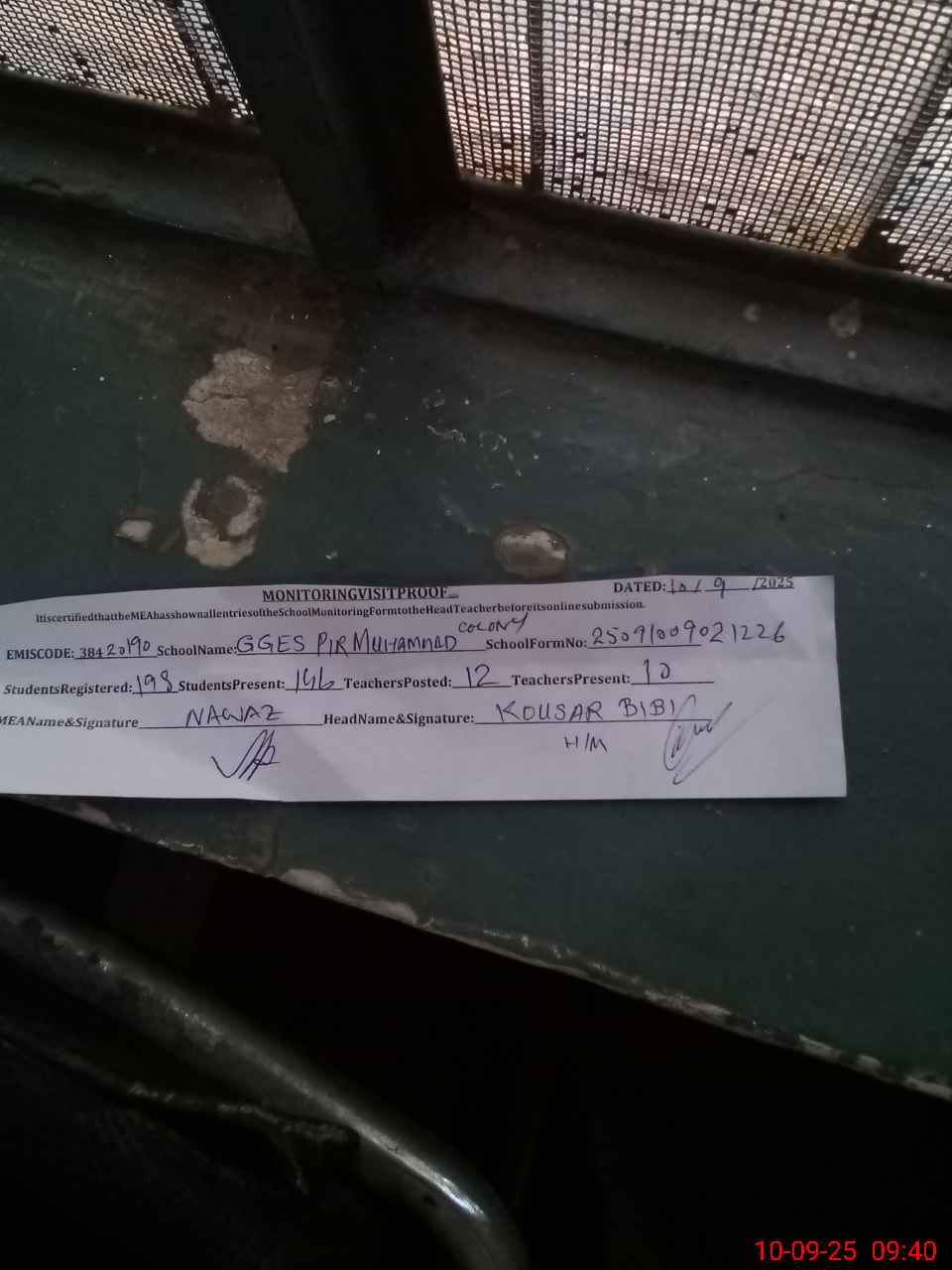 | EMIS Code: 38420190 | Name of School: GGES PIR MUHAMMAD COLONY | |||