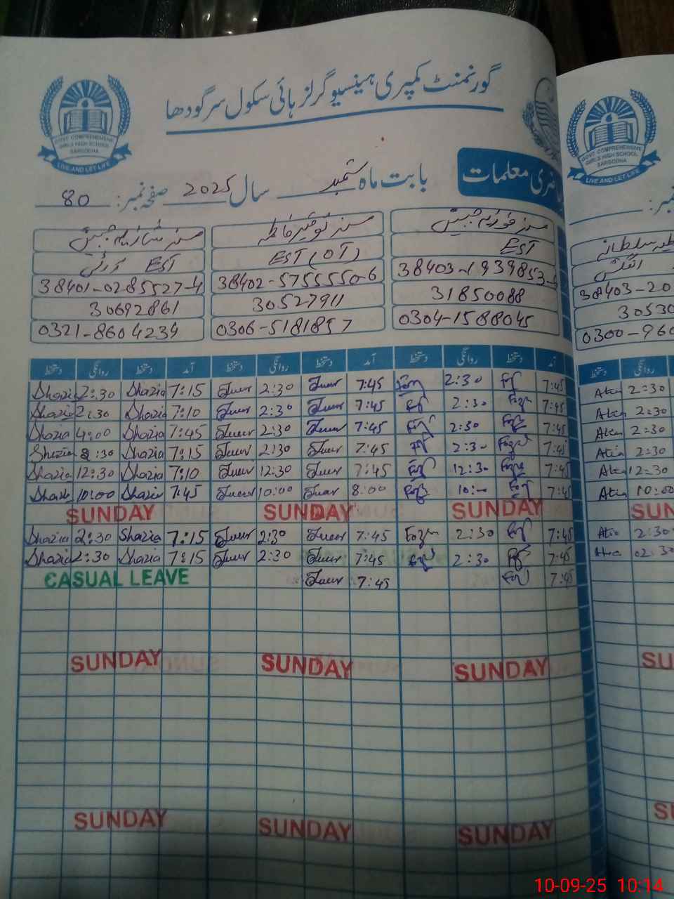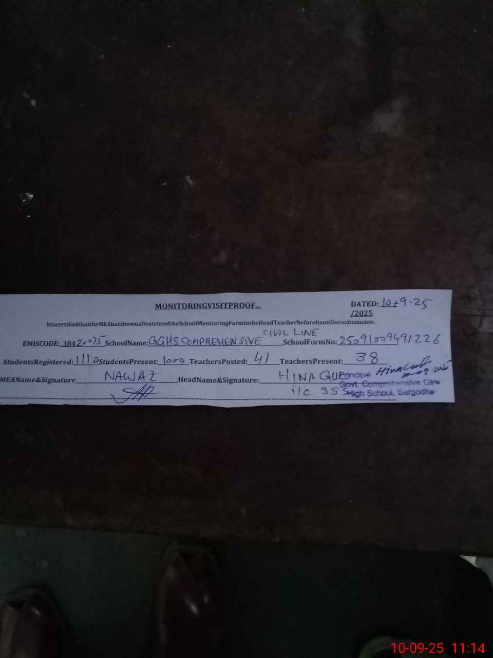 | EMIS Code: 38420075 | Name of School: GGHS COMPREHENSIVE OLD CIVIL LINE SARGODHA | |||