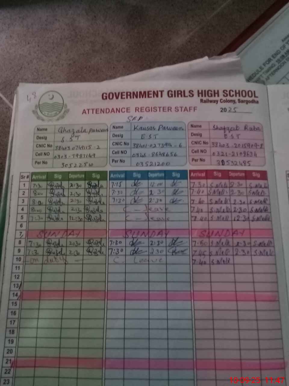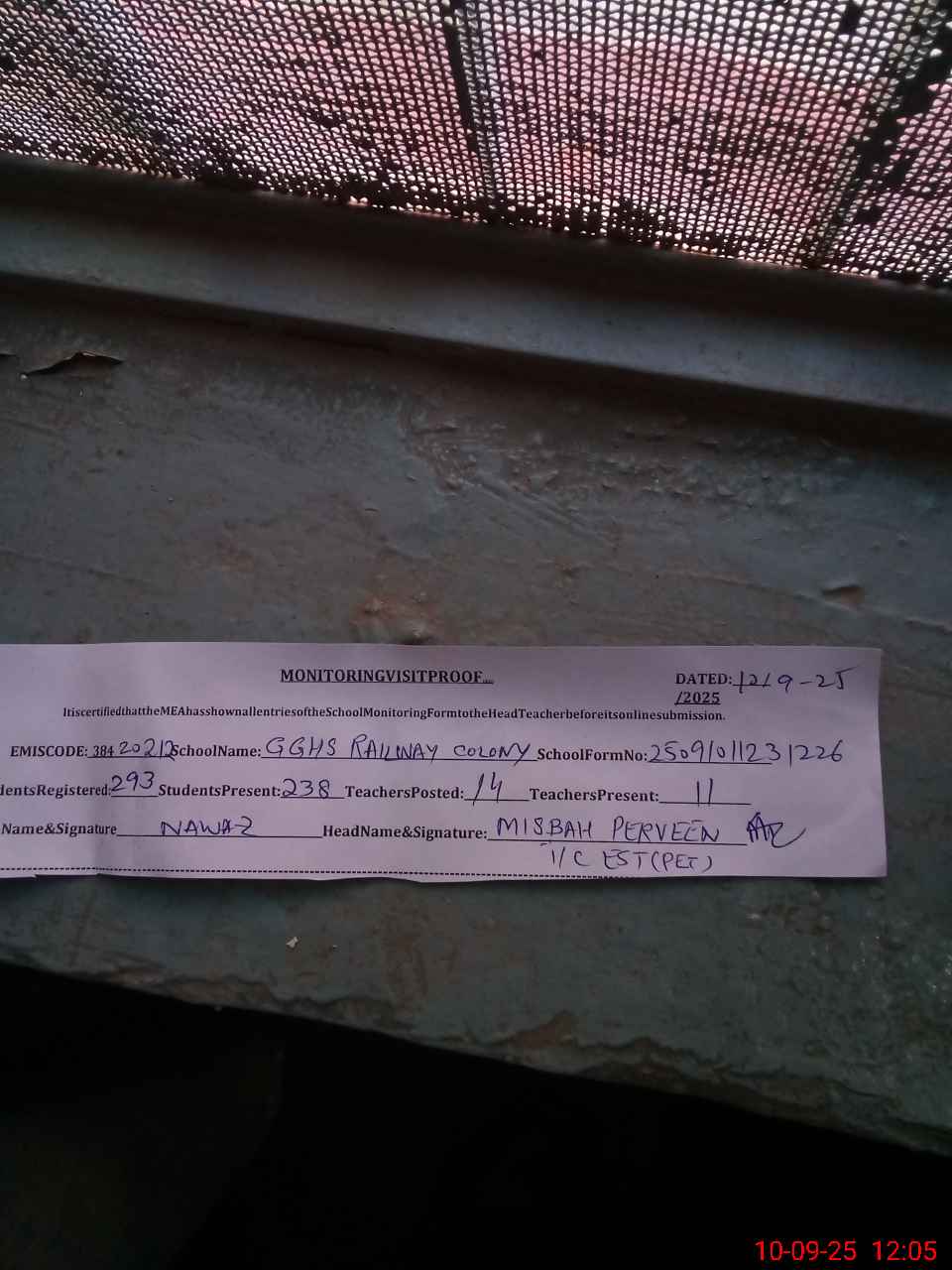 | EMIS Code: 38420212 | Name of School: GGHS RAILWAY COLONY SARGODHA | |||