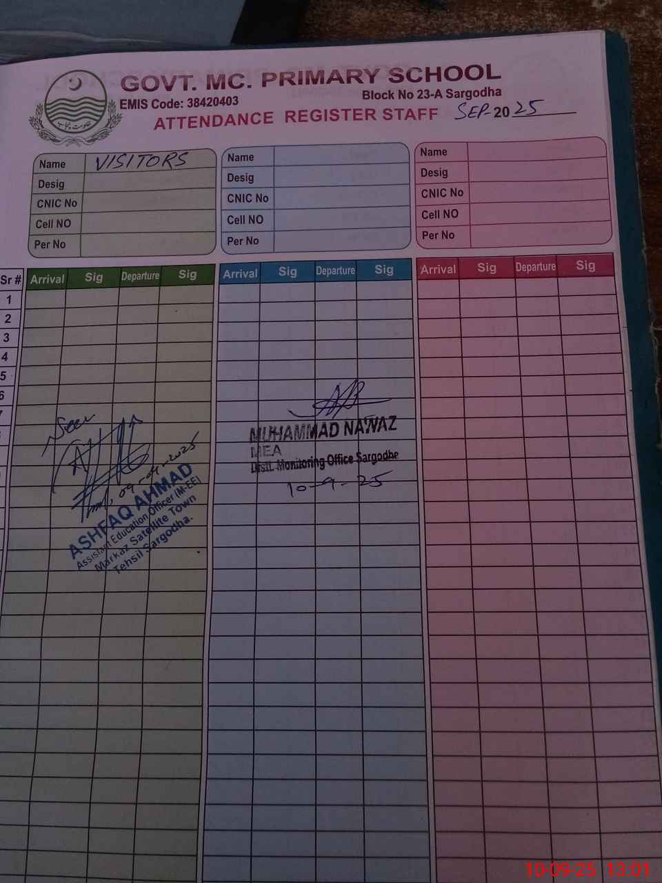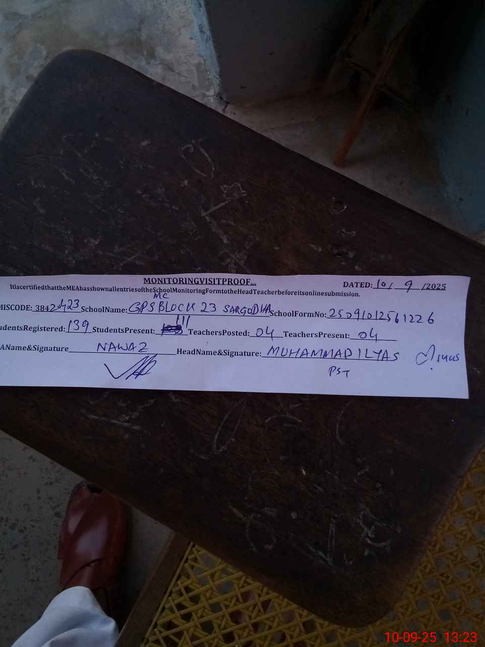 | EMIS Code: 38420403 | Name of School: GPS MC BLOCK NO.23-A SARGODHA | |||