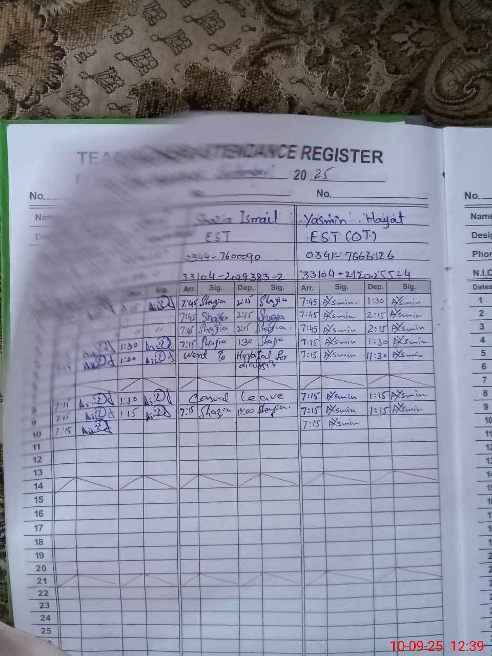 | CNIC | Full Name | Designation | R/C | Absence During Last Calender Month |