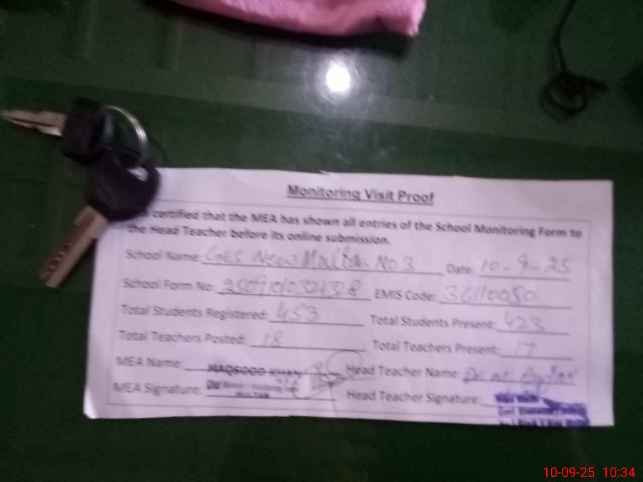 | EMIS Code: 36110050 | Name of School: GES NEW MULTAN NO. 3 BLOCK V MULTAN | |||