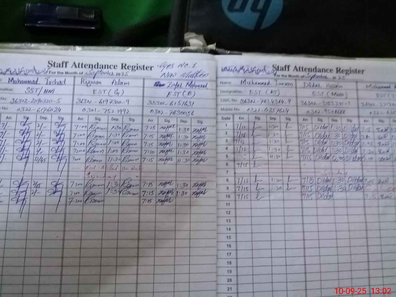 | CNIC | Full Name | Designation | R/C | Absence during last cal. month |