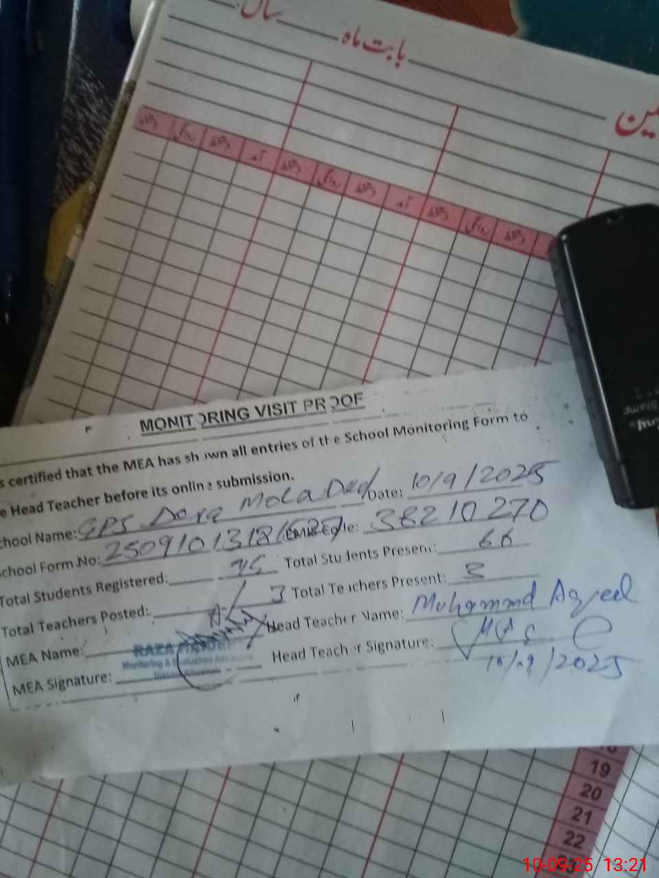 | EMIS Code: 38210270 | Name of School: GPS DERA MOLADAD | |||