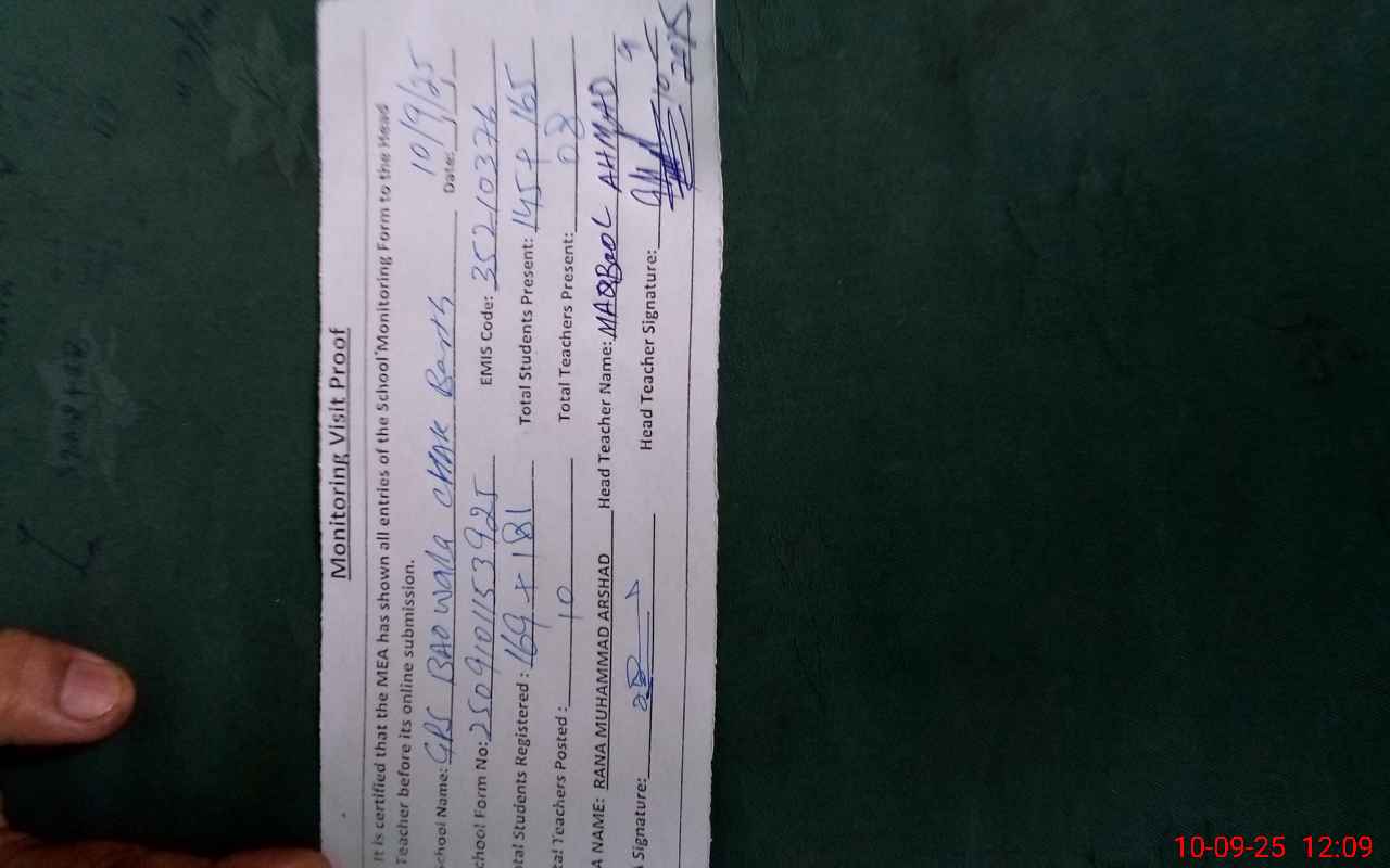 | EMIS Code: 35210376 | Name of School: GPS CHAK BHARATH (BAO WALA) | |||