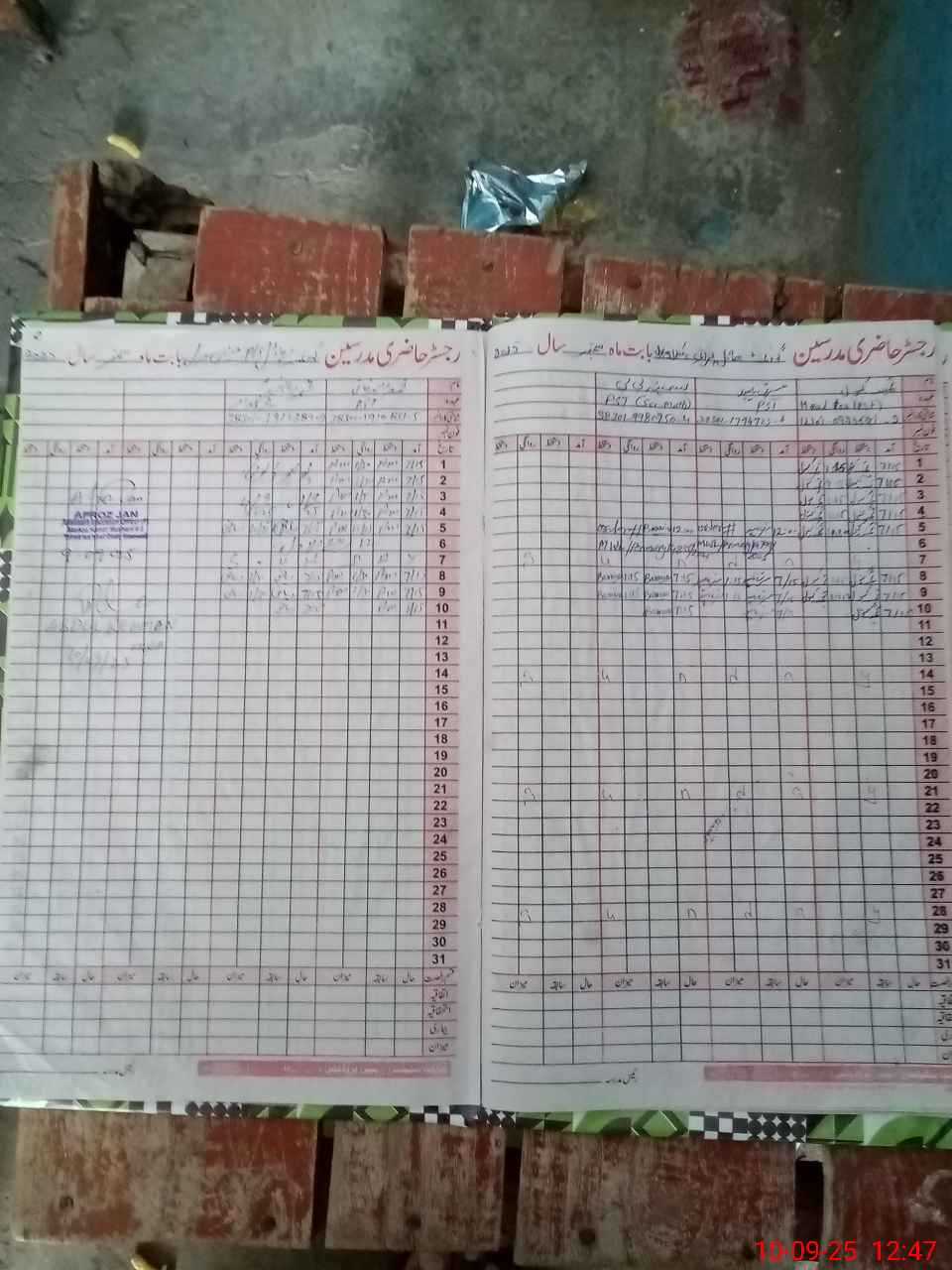 | CNIC | Full Name | Designation | R/C | Absence During Last Calender Month |