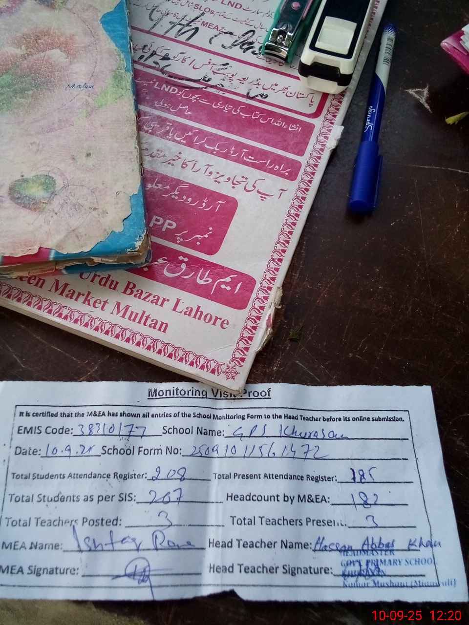 | Attendance Register | Head Teacher | MEA with School | Visit Proof |