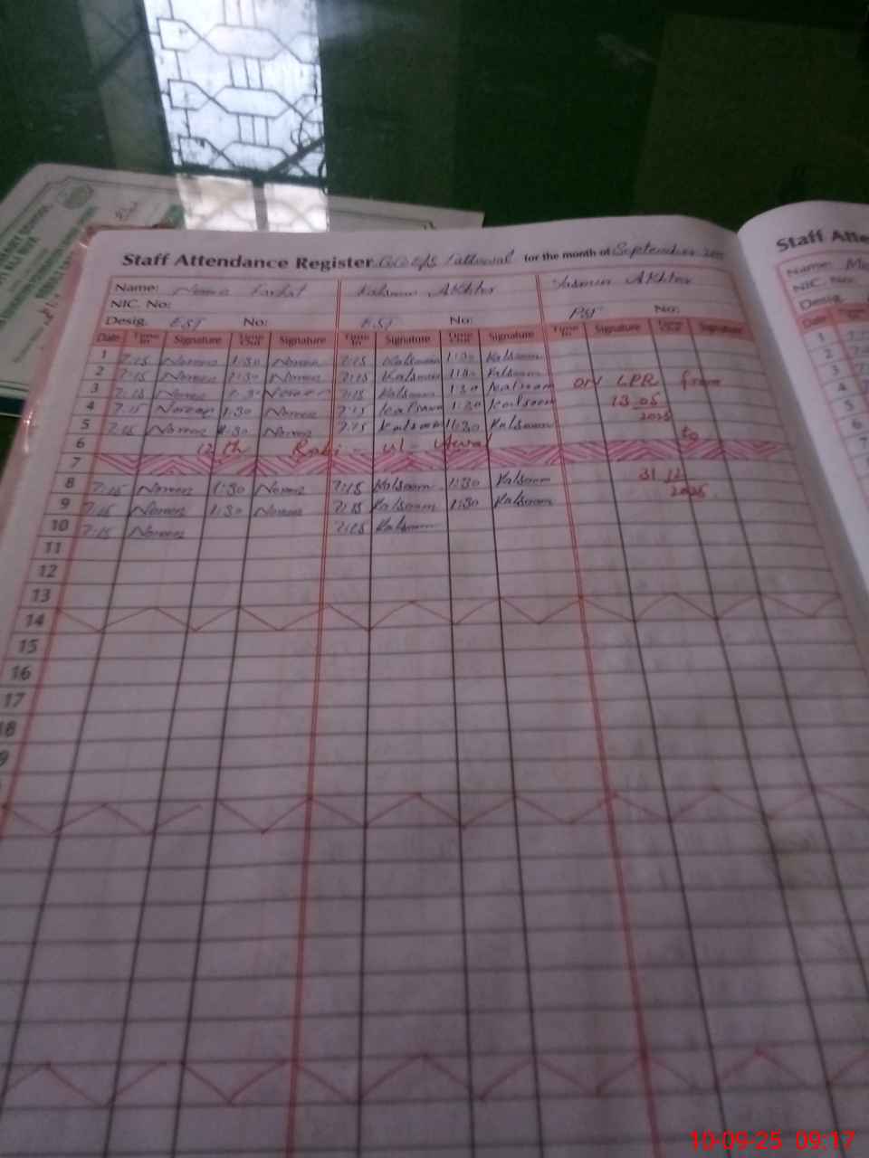 | CNIC | Full Name | Designation | R/C | Absence During Last Calender Month |