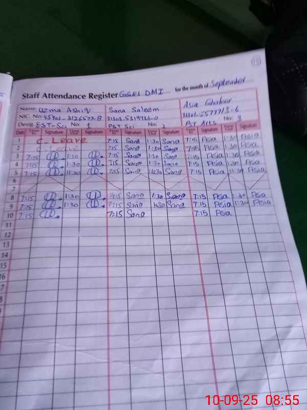 | Name: Uz**** As**** Designation: (School Headmaster's/Headmistress's) EST IN HEAD Phone/Cell Number: 03**** |