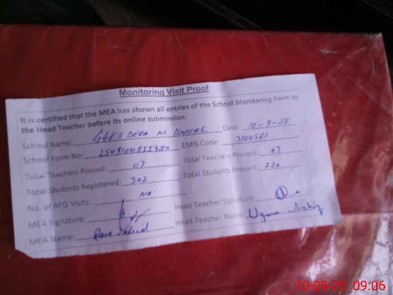 | Certified that this School was Inspected by the Undersigned MEA/DMO Today and the Information Stated Above is as Per Record. | |||||