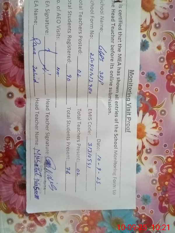 | EMIS Code: 31310541 | Name of School: GGPS CHAK NO 38/P | |||