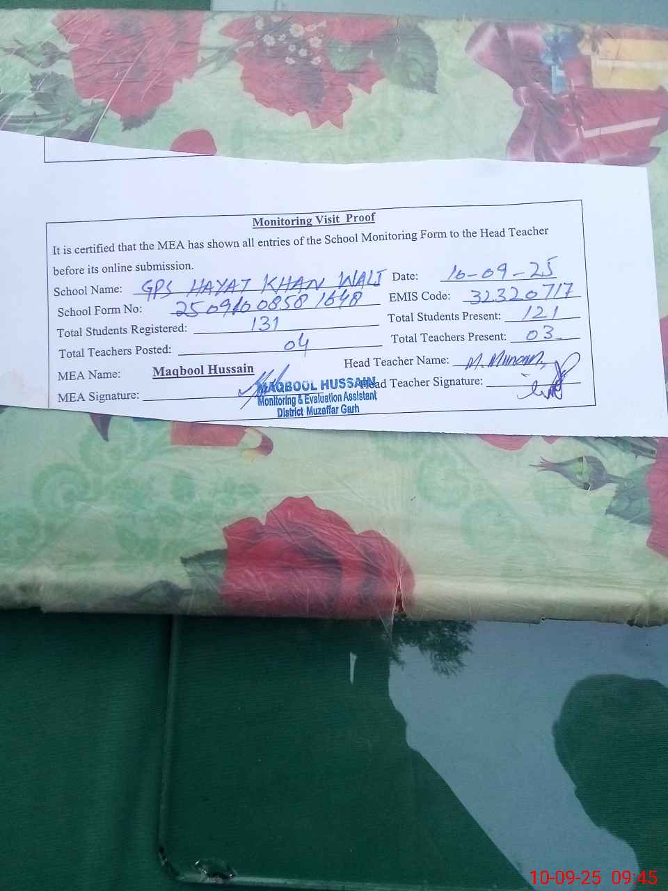 | EMIS Code: 32320717 | Name of School: GPS HAYAT KHAN WALI | |||