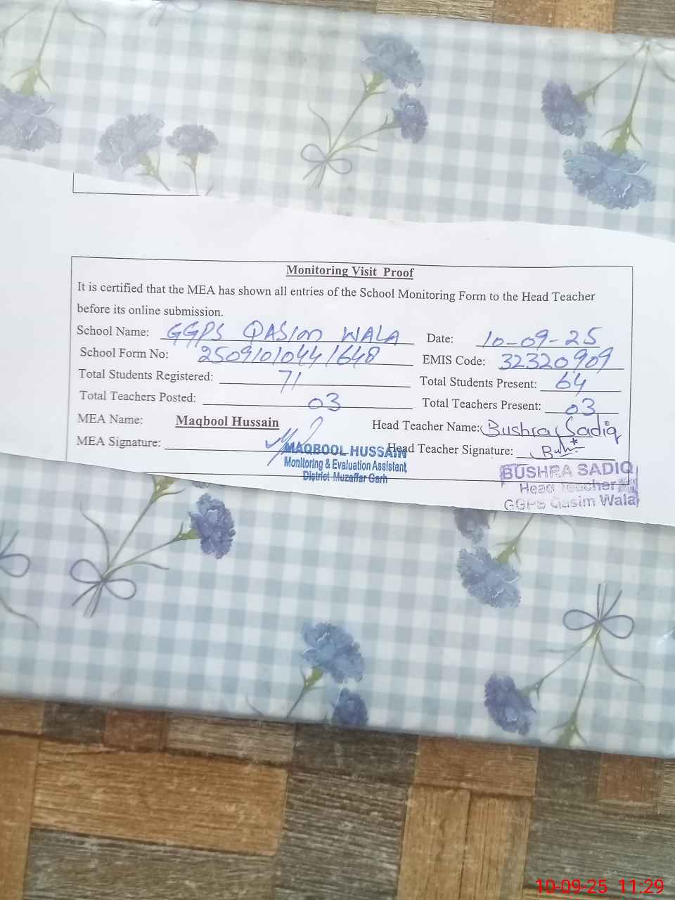 | EMIS Code: 32320909 | Name of School: GGPS QASIM WALA | |||