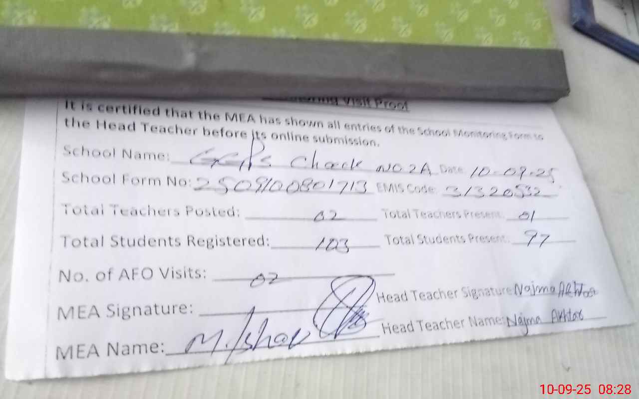 | EMIS Code: 31320532 | Name of School: GGPS CHAK NO.2/A | |||